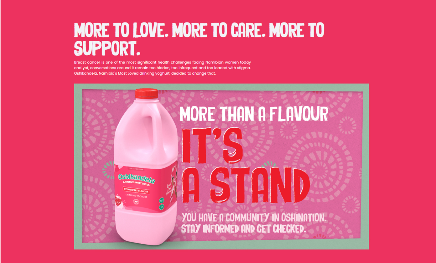 More than just pink, more than just support, this was Oshikandela standing with Namibia, in the same way that Namibia constantly has: with heart, with humanity and with heritage. Through the 2 Litre special edition Oshikandela Strawberry, the campaign extended the brand’s promise of More to Love into a More to Care movement, honouring not only those fighting breast cancer but also the caregivers, survivors, supporters and the communities who lift them, a reminder that early detection and support is something we all play a role in. Alongside activations, some women chose to share vulnerable parts of their journeys through interviews, bravely giving voice to their experiences with breast cancer. In doing so, helping break the stigma and encourage others to act.